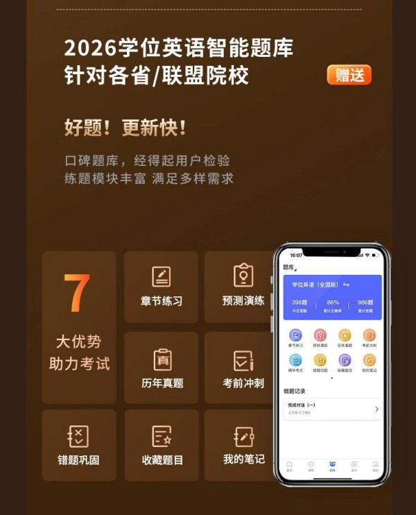 钉题库2026学位英语·协议班,正式上线,全力助你通关!