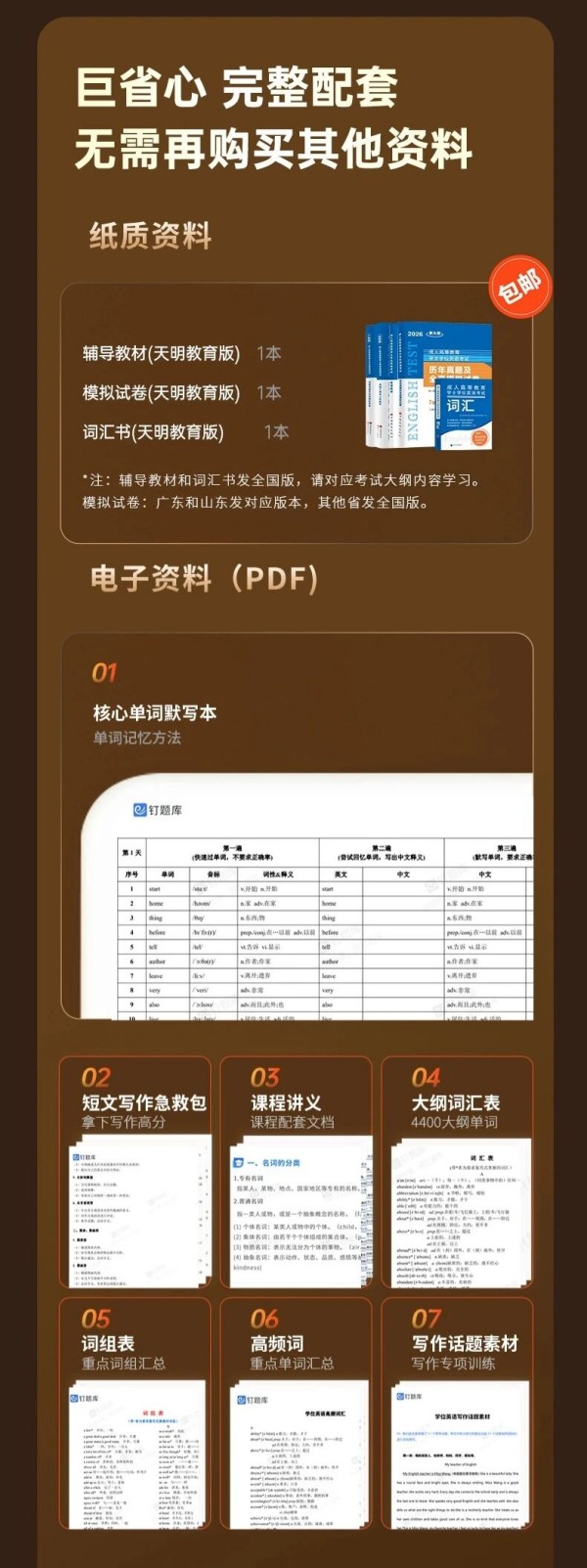 资料在精不在多,拥有这些资料,你不用再去到处找其他的!我们提供完整配套的精选资料!1本纸质教材+1本纸质试卷+1本词汇书+7大电子资料,相信我,这些真的足够了!