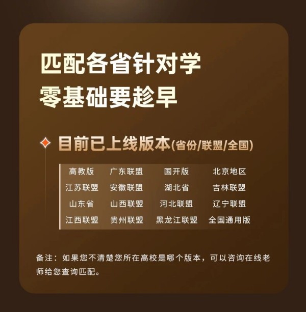 ①若不清楚所在高校对应版本,可咨询在线老师查询匹配,全国通用版兜底覆盖所有考生。详情可扫码咨询助教!