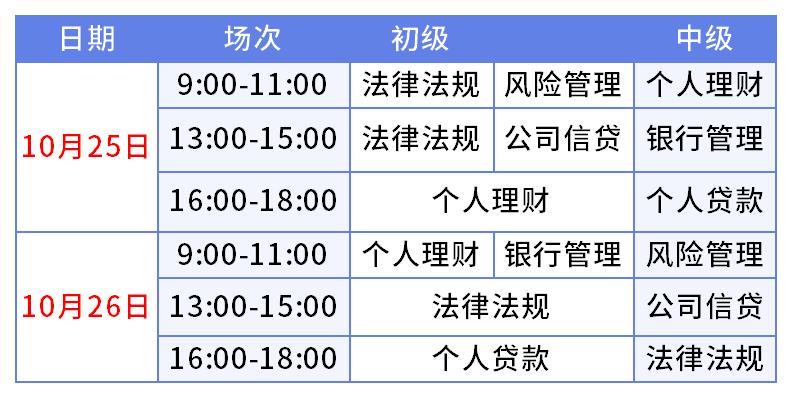 2、考试时间:10月25日、26日(初级和中级同时同地开考)
