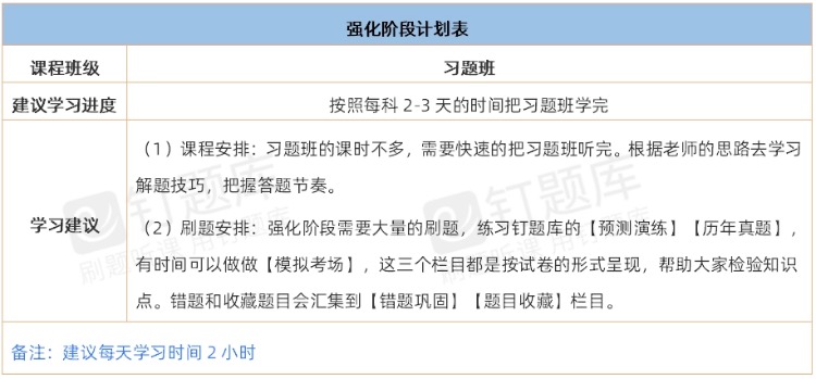 在这个阶段可以学习钉题库【冲刺班】的课程,结合前面的学习笔记,在冲刺阶段再次巩固所掌握的知识点,有条件的话可以再将精华考点过一遍,万变不离其宗,只要将知识点掌握扎实,考试再难也不担心!
