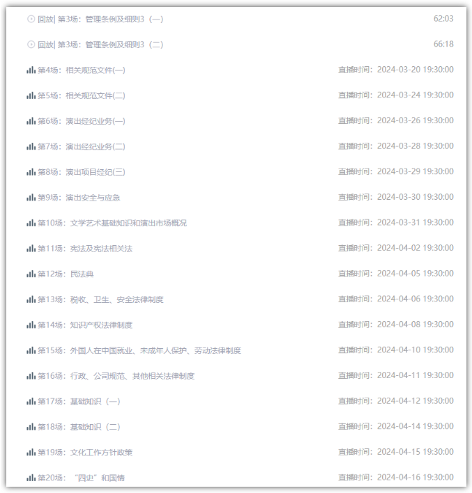 @所有考生 必看!2024演出经纪人新大纲课程已开始更新!
